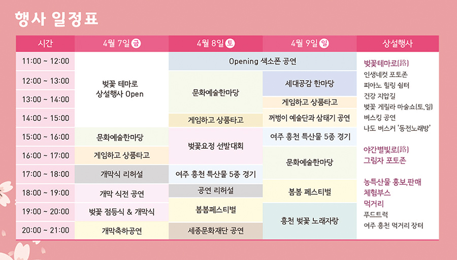 제7회 여주 흥천남한강 벚꽃축제 일정