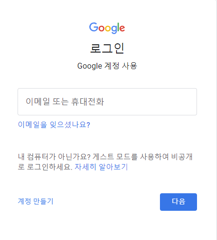 - 먼저 구글에 로그인을 합니다. 구글 계정이 없으면 새로 만들어 줍니다.