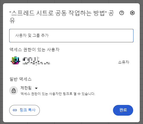 구글 스프레드시트 링크 이용한 공유 방법