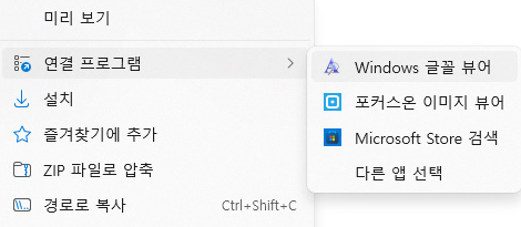 윈도우11로 업그레이드한 후 몇 년 만에 윈도우 폰트 설치를 하는데 연결 프로그램을 선택하라는 창이 떠서 뭘 선택하는 거지 하고 헷갈렸습니다. 윈도우10일때는 그냥 더블 클릭하면 설치되었던 기억이었는데요.